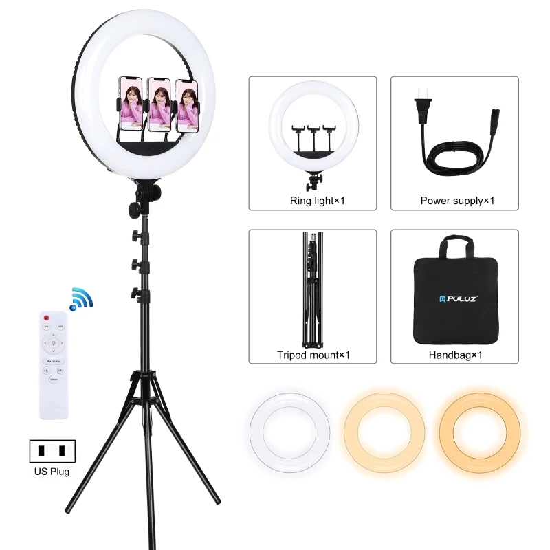 Product Name: Puluz 18 Inch 46Cm Ring Light + 1.8M Statief Mount Usb 3 Modes Dimbare Wit Licht Led Gebogen Oppervlak Ring Vlogging Fotografie