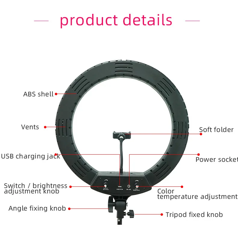 Product Name: 18 "Selfie Ring Licht Met Statief & Telefoon Houder, 3200-5800K Dimbare Schoonheid Ringlicht Voor Live Stream/Make-Up/Youtube/Vlog